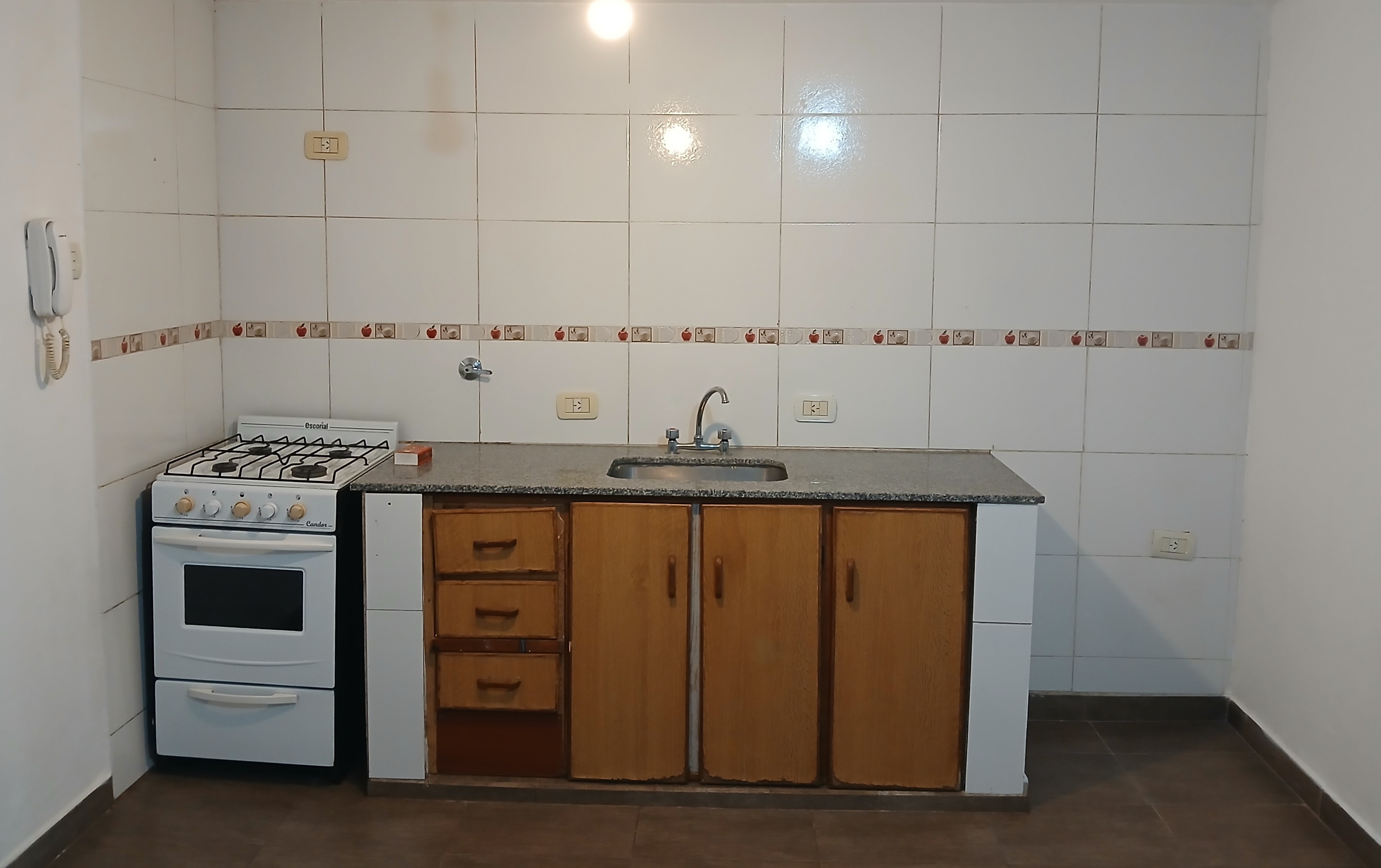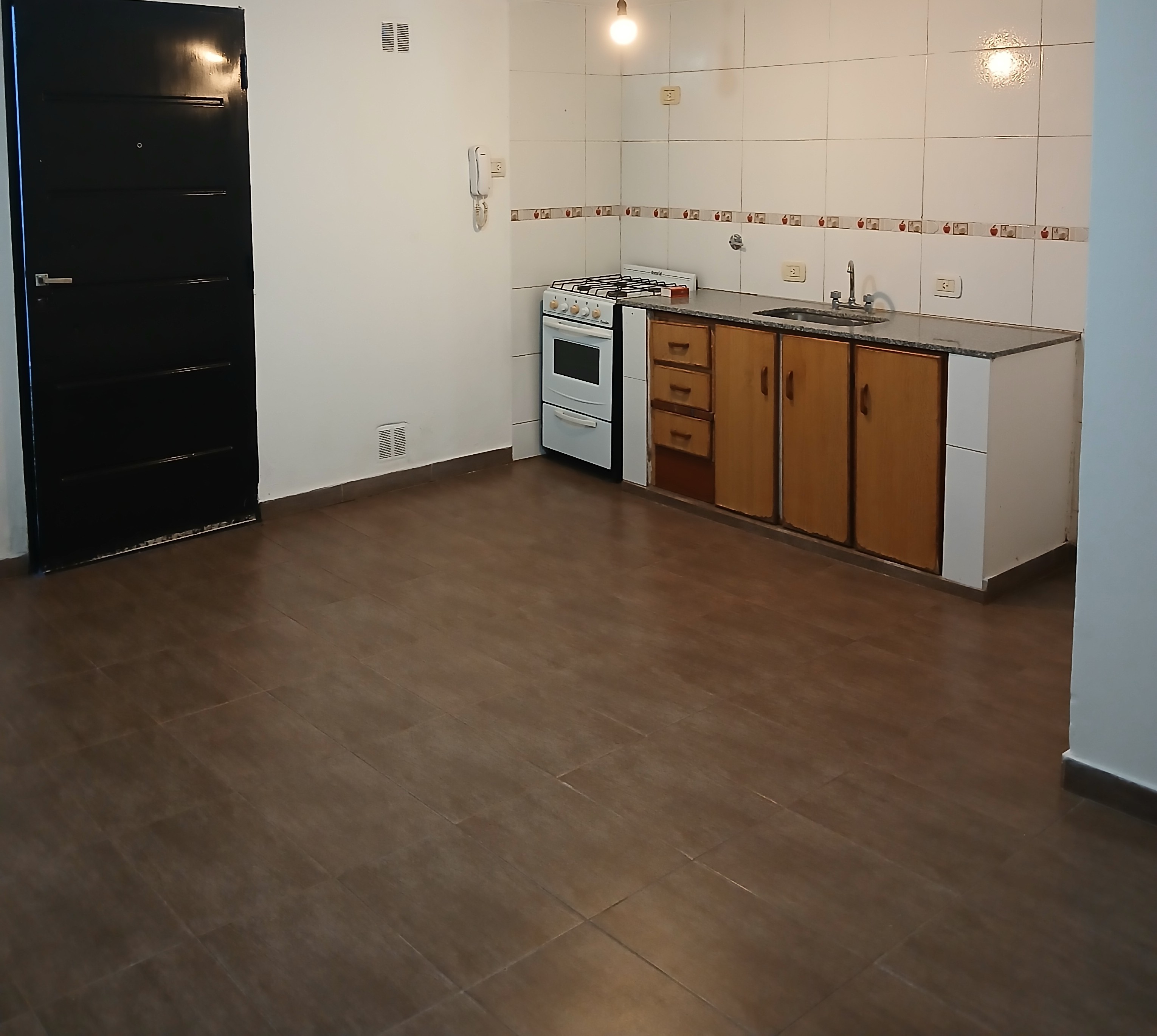 Cuenta con cocina comedor amplia, luminosa, con ventilación y amoblamientos a medida. Un dormitorio amplio y luminoso en impecable estado con ventana con persiana y rejas de seguridad. Baño con ducha, vanitory con bacha con canilla y mueble de madera con dos puertas, todos sus accesorios y ventilación natural. Patio. Entrada de auto.